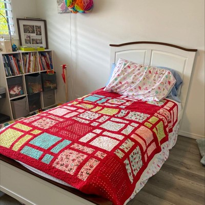 We bought this bed for our daughter, and she absolutely loves it. Easy to put together and seems very sturdy. Looks a lot more expensive than it is. Only gave 4 stars because it does have a strong chemical-like odor. We had to leave the window open all day the first day to air it out.
