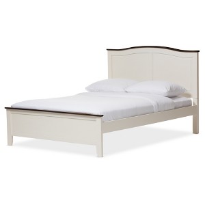 Twin Harry Classic Platform Bed Milky Cream/Walnut - Baxton Studio: Parisian Inspired, No Box Spring Required