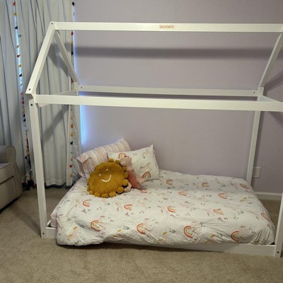 This bed is adorable! Absolutely perfect for our 2 year who was definitely ready for a toddler bed. We already had a twin mattress so it was nice to find such a cute product for twin size and not “toddler bed” size. We will adorn the roof with some lights and a little mesh fabric to make it even cozier but the product itself is top notch! There are little imperfections in the paint here and there but nothing terrible, and the wood is much nicer than plastic or metal. Highly recommend!!