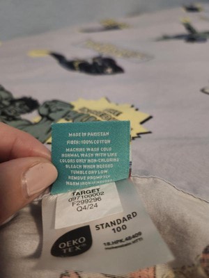 The Disney by Pillowfort Sheet set is a standard sheet quality that is suitable for a child’s bed. These sheets are made of thinner cotton material and feature Disney superhero pictures throughout. This set includes fitted, flat and pillowcases. Washes well and is an affordable set for your kiddo to enjoy.