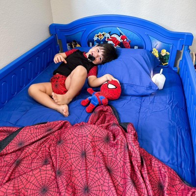 Designed to inspire action-packed dreams, this Marvel Spider-Man Twin Bed by Delta Children is full of web-slinging fun! Featuring removable guardrails, plus 3D graphics and colorful decals of your child's favorite superhero at the headboard and reversible footboard, it's a must for any Spidey fan.