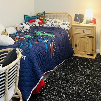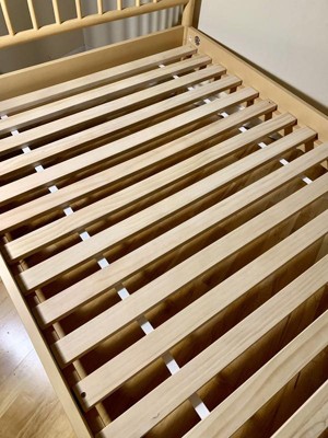 A: The bed frame is made from rubberwood, providing durability and a natural aesthetic.