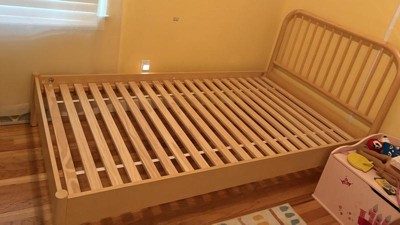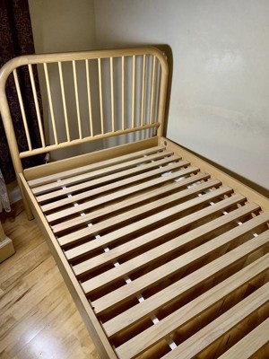 A: Hi Target fan - Thank you for your interest in the Twin Natural Wood Bed. The dimensions are 39.12 Inches (H) x 42.5 Inches (W) x 79.5 Inches (D). Happy shopping! - Emma