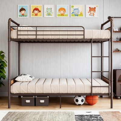 Twin Over Twin Bunk Bed, Metal Bunk Beds with Safety Guardrails and Built-in Ladder