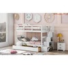 - Smart Storage Integration This Stairway Twin-Over-Twin Bunk Bed includes four spacious compartments under the stairs and three drawers, offering practical storage solutions for bedding, toys, books, and more ¡ª helping you keep your room organized and clutter-free.