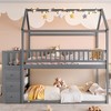 - Whimsical House-Shaped Design with Play Function Featuring a charming house-shaped frame with a roof, this bunk bed doubles as a cozy sleeping space and a playful playhouse for kids. The whimsical design adds a lovely, lively touch to children¡¯s bedrooms, creating an enjoyable environment that encourages imagination and fun, making it a versatile centerpiece for any kid¡¯s room.