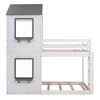 Twin Over Twin Wod Bunk Bed with Roof and Window