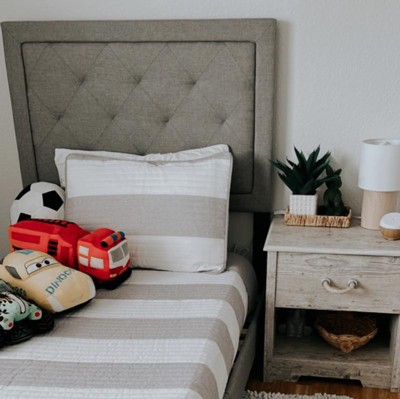 Give your bedrooms a cutting edge feel and look with this modern and contemporary bed. Paris beige linen fabric upholstered twin size bed features cleanliness with tufting effect in diamond shape. Constructed with CARB-compliant solid rubberwood and MDF slats, this piece of furniture complies with kids' safety regulations. Heavily padded with foam, the headboard provides a safe shelter for you or your kids, ensuring the whole night sleep without bumping on the hard headboard. Perfect for growing teens or youths, the Paris features low footboard, creating an illusion of open space. Solid rubberwood feet in black finishing support the bed frame allowing the bed to stand proud and be the focal point of your bedroom. Underneath the platform, it could be a good place to store some books and magazine for your reading at night. The twin size bed is suitable to be placed at your guest bedroom, kids' or teens' bedroom or small bedroom. Made in Malaysia, the Paris requires assembly.