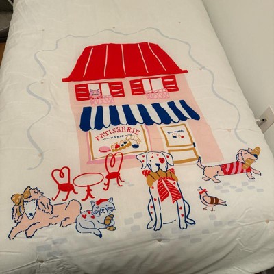 Comforter set with dog and french bread