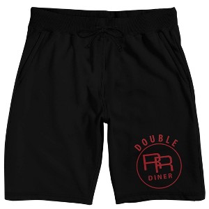Twin Peaks (1990) Double RR Diner Logo Men's Black Lounge Shorts - 1 of 4