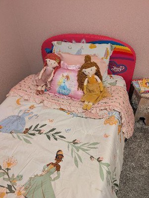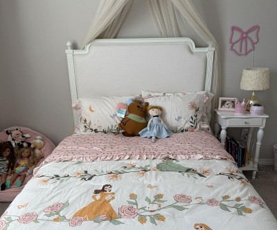 This comforter is absolutely adorable and perfect for a little princess! The design is beautiful, featuring Disney princesses like Belle and Rapunzel surrounded by soft pastel flowers and butterflies. The colors are vibrant but still gentle, making the whole room feel cozy and magical. The material feels soft and comfortable, great for snuggling up at night. It fits nicely on the bed and really brings a fun, fairy-tale vibe to the room. My child loves pointing out the characters, and it adds such a cheerful touch to the bedroom décor. Highly recommend for any Disney lover!