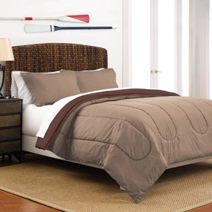 Crafted of polyester and available in twin, full/queen, and king sizes, the Martex Reversible Comforter Set is stylish and can go from the dorm room to the guest room with ease. Choose from khaki/chocolate, navy/ceil blue, ebony/khaki, coral/light gray, graphite/ebony and turquoise/teal — no matter what colors you select, this comforter and coordinating shams (twin set comes with one sham, full/Queen come with two standard shams and king comes with 2 king shams) makes for a striking and easy-to-switch-up look that’s perfect for any bedroom. Machine washable.