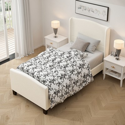 Twin Size Bed Frame with 49.21" High Back Upholstered Headboard and 27.17" High Footboard for Bedroom or Apartment