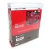 This is a Case IH Red Micro-Fiber Sheet Set. This bed set comes fully stocked for your bedding needs. Included with the set are 1 fitted sheet 39 x 75 inches with 14-inch-deep pocket fit, 1 flat sheet 66 x 96 inches, and 1 pillowcase 20 x 30 inches. All materials are micro-fiber polyester and 220 thread count. These sheets are soft and durable for comfort and relaxation.