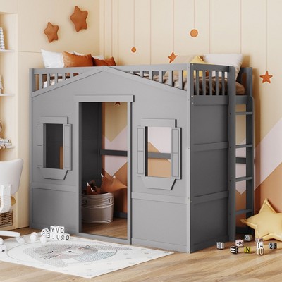 Twin/Full Size House Loft Bed With Ladder - ModernLuxe