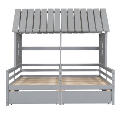 Twin Size House Platform Beds with Two Drawers for Boy and Girl