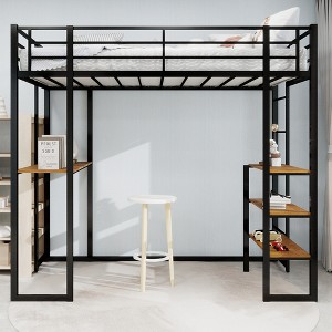 Twin Size Iron Bed Frame with Table and L-shaped Desk