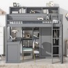 Twin Size Loft Bed with Multiple Storage Shelves and Wardrobe