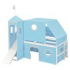 Twin Size Loft Bed with Slide, Pink Tent, and Tower