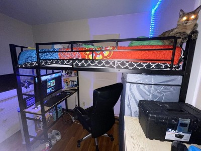 I love this bed!! So many cool things you can do with it, as a 6ft tall person I can well fit under the loft. Dislikes: ladder interferes with desk making it kinda difficult to get down. the instructions are kinda annoying and incorrect at times, sometimes you gotta undo a step to do another step and then go back and redo that step. Other then those two the bed is amazing!