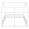 This practical and secure platform bed features a unique two-in-one design with two side-by-side beds, topped with a playful house-shaped frame. Crafted from durable metal, the bed boasts a high-quality solid frame for lasting durability and strong weight capacity. Surrounding safety guardrails ensure a secure sleeping environment, making it perfect for children or shared spaces.