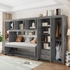- Maximize every inch of your living space with this versatile twin size Murphy bed. By day, it serves as a practical workstation with a convenient desktop surface, and by night, it transforms into a comfortable sleeping space. Designed with ample storage, including overhead cabinets, a side wardrobe, drawers, and shelves, this bed keeps your room organized while maintaining a clean, modern look. Perfect for apartments or multifunctional rooms, it combines functionality, durability, and style in one smart solution.