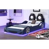 Twin Size Race Car-Shaped Platform Bed with LED and Upholstered Backrest