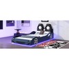 Twin Size Race Car-Shaped Platform Bed with LED and Upholstered Backrest