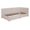 - Timeless Classic Design with Linen Fabric & Storage Drawers This daybed features a refined semi-closed design upholstered in durable, dirt-resistant linen fabric. It includes two smooth-gliding movable drawers, offering both elegant style and practical storage.
