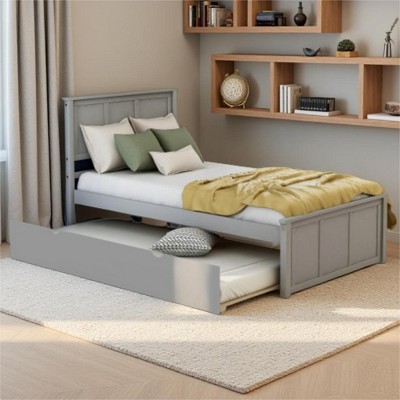 Twin Size Upholstered Platform Bed with Trundle, Modern Berber Fleece Bed Frame for Kids Boys Girls Bedroom, Gray