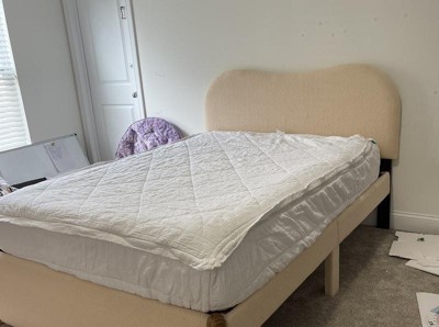 This bed is really well made but the material covering it is not what I expected, it’s kind of like a curly fur and also the “beige” option is fully a peach color. Assembled it anyway because I knew I could work with it
