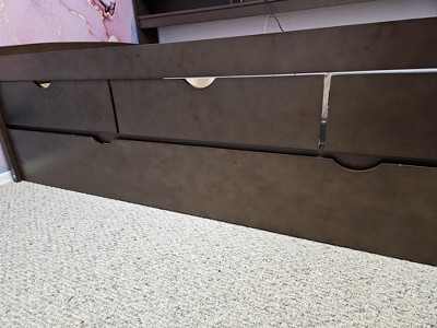 I purchased this bed as part of a full bedroom remodel for my daughters, which included fresh paint, new light fixtures, and all new furniture. Unfortunately, I am very disappointed with the quality of this bed given the price. The overall finish is poor. The edges lack a clean, finished look, and the backboard behind the shelving has noticeable paint splotches and scratches regardless of how it is installed. The drawers and pull-out trundle feel extremely flimsy, which raises concerns about durability and long-term use. When the drawers are closed, there are visible gaps along the front, as if the measurements were inaccurate during manufacturing. The bed looks cheap and does not reflect its cost. Had returning it been easier, I would have done so immediately. I followed the instructions carefully, and all screws and nails aligned properly with the pre-drilled holes, so this appears to be an issue with the product itself—not assembly error. Overall, this bed is not worth the price. I would have been better off purchasing a similar item from IKEA. I do not recommend this product.