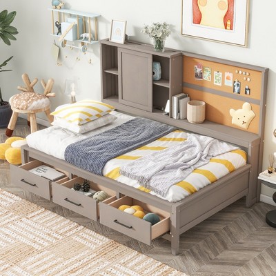 Twin Size Wooden Daybed with 3 Storage Drawers, Shelf & Sockets/USB Ports, No Box Spring Needed - ModernLuxe