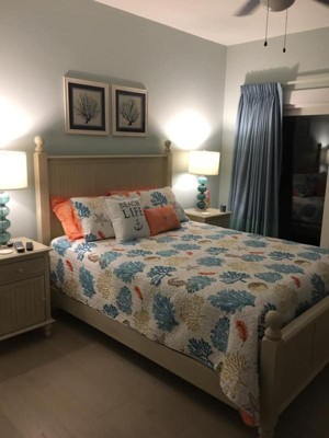 I love this bedding. Goes great in my guest room at my beach house. Good quality & great colors. Highly recommend for a beach house or beach themed bedroom
