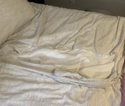 Just purchased this item yesterday. Opened the package so I could wash it and noticed oily stains all over it. Opened the zipper and the residue was inside the duvey cover, so not just some accidental stain from being on a shelf. I had already opened the package in a way that it cannot be put back on. So I thought, whatever, I’ll try to wash it. Washed it and the oily residue didn’t come out at all. So disappointed with this purchase. You can see all the photos of what it looked like on outside and one photo taken from the inside where you can see the substance was. It’s obvious whatever it was ended up inside the duvey during manufacturing since it came zipped closed.