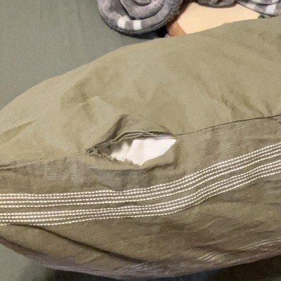 I WILL NEVER BUY BEDDING FROM TARGET AGAIN!!! Time after time this keeps happening and the quality is awful. I spent $80 on this duvet cover for it to start falling apart at the seams and threads after ONE NIGHT OF USE!!! I washed it and the green dye turned yellow discoloration across it, the inside tabs to hold the duvet RIPPED OFF INSIDE. I have NEVER had so many issues with bedding as I have with target’s. I only bought it because my boyfriend liked the color and pattern and boy do I regret it!!! Waste of money!!! If I could give it ZERO stars I would!