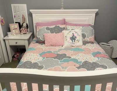 Twin/Twin Extra Long Euphoria Cotton Reversible Fluffy Cloud Print Kids' Duvet Cover Pink: Urban Habitat