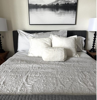 This quilt was an easy piece that changed the entire personality of our guest room! The thickness and weight are perfect for a year round blanket, and the color is modern and stylish, while the paisley keeps things traditional and classic. Paired with a comforter folded in thirds, which can be changed with the seasons, this quilt is an excellent anchoring piece for any bedding set.