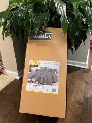 [This review was collected as part of a promotion.] I am really enjoying this comforter set this summer. It is light weight and keeps me at just the right temperature, not too hot not too cold. It fits perfectly on my queen bed, drapes over just enough to cover the top mattress. It comes in a small box and expands pretty much on its own as soon as you take it out. The throw pillow adds a nice touch.