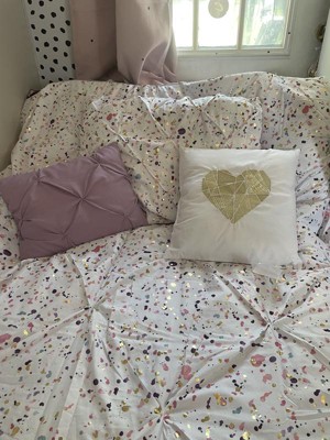 [This review was collected as part of a promotion.] I got this for my 12 year old daughter and she loves it! This is a twin size bedding set that includes a couple decorative pillows as well which has made my daughter more excited to make her bed everyday! We love how colorful the splash design is and also love how it can be flipped over and used as a solid light purple color like the decorative pillow that’s included. We also love the other decorative pillow that is white and has a heart in the middle. Everything is very comfortable and so exciting to have new bedding!