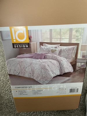 The Intelligent Design Nicole Metallic Printed and Pintucked Comforter Set brings a fierce touch of glam to your bedroom. A vibrant metallic print and chic pintucking adorns the face of the comforter for a stunning look. The matching shams (1 in Twin/TwinXL) coordinate perfectly with the comforter, while oblong and square decorative pillows provide the finishing touches. Machine washable for easy care, this contemporary comforter set adds a glamorous update to your bedroom décor. This bedding set has an antimicrobial treatment that provides built-in freshness protection, reducing the growth of odor causing bacteria to keep fabric lasting longer. Items in the set may come in a rolled or compressed packaging, which will need to be fluffed up or steam ironed before use to remove wrinkles.