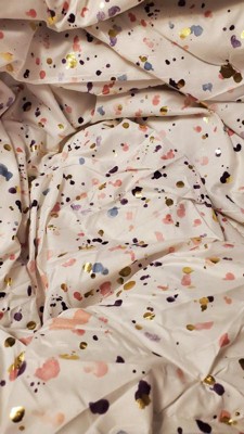 [This review was collected as part of a promotion.] This is a really pretty comforter set! It is so colorful and sparkly with a metallic specs throughout, and I just love it! The lavender backing really sets off the colors just right. And the coordinating pillows that come with it are also very pretty. I am so excited to show my little girl her beautiful new bedroom set.
