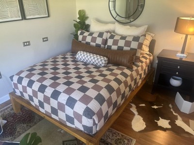 This woven check comforter set in navy and burgundy is a classic pattern especially for Fall or Winter time bedding decor. The colors are a bit faded but it gives it a more rustic look. The set includes a comforter and shams which are made of 100% cotton which is my preferred choice of material for bedding. It’s machine washable which makes for easy cleaning. There is some pilling after machine washing but I can use my linter to clean that up. Other than that it’s super cozy and comfortable