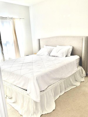 This bed skirt has received high praise for its ease of installation and stylish design, making it a perfect addition to any bedroom. Guests appreciate its ability to fit various mattress sizes without the need to lift heavy mattresses, while also effectively hiding under-bed clutter. The soft fabric and elegant colors enhance the overall aesthetic of the room, making it a favorite among those looking to elevate their bedding decor.