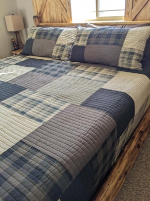 The Winter Hills Oversized Cotton Quilt Set features a mix and match of plaids and solids. Made from 100% cotton this lightweight quilt is soft to the touch and can be used year round. The set includes 1 quilt and 2 shams. Machine washable for easy care.