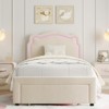 - Upholstered Bed with Bear Headboard: The headboard is padded with high-resilience foam and covered in luxurious velvet for maximum comfort. Its elegant flower shape integrated with LED lights adds chic beauty to your room. The headboard height is adjustable from 44.1" to 46.1" to fit various mattress sizes, recommended for 10''-12'' mattresses.
