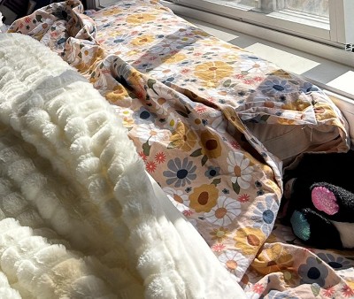 Love the retro floral pattern. Perfect fit for her bed too.