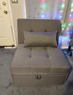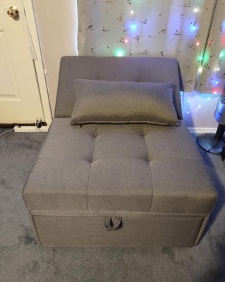 [This review was collected as part of a promotion.] This is great for a spare room or a dorm for a college kid. Very stylish design. The head rest clicks up and down. Pills out to a single.size bed. Great addition to my teens room. Good for sleepovers. Can easily slip a sheet over it for a bed. Come with a small pillow also. Overall experience is very happy.