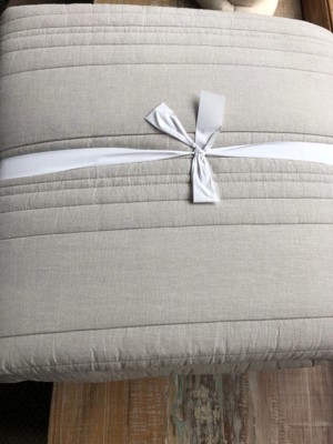 The simplicity of solid color is the perfect choice for creating a calm and relaxing environment. This all cotton quilt set, pre-washed for extra softness, offers inviting comfort and fresh styling with its spaced channel quilt pattern forming a dimensional classic stripe pattern. Offered in two different neutral colors, warm linen and cool horseshoe gray, choose the one that is right for you. Twin quilt set includes: one quilt (88"L x 68"W) and one sham (21"L x 27"W). Full/Queen quilt set includes: one quilt (90"L x 90"W) and two shams (21"L x 27"W). King quilt set includes: one quilt (96"L x 104"W) and two shams (21"L x 37"W).