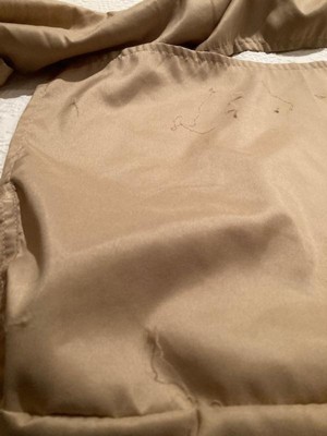The material is very thin. Doesn’t look like the photos when on the bed.